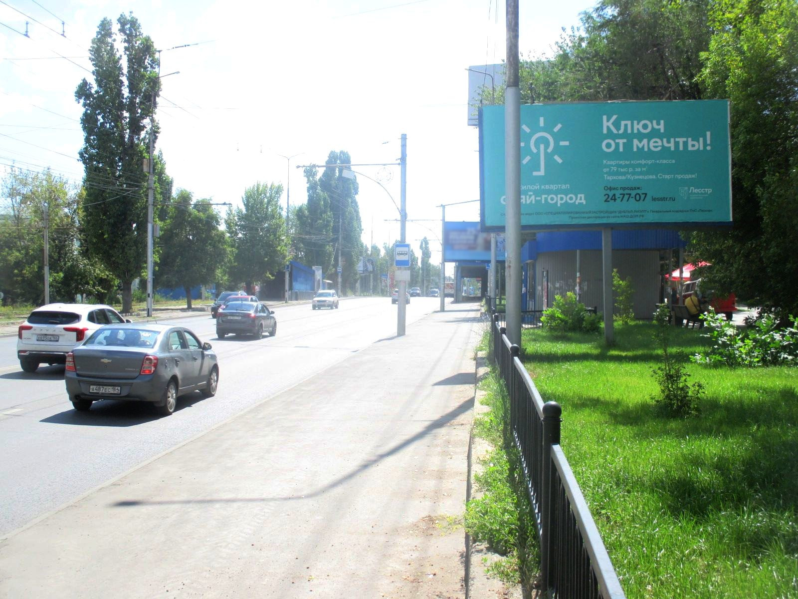 - Описание рекламной конструкции: Двустороння статичная освещенная конструкция. Установлена на самой крупной магистрали города, соединяющей Кировский и Ленинский районы, насыщенной потоком машин. Щит расположен на остановке Вишнёвая общественного транспорта. Рядом парк, жилые массивы.