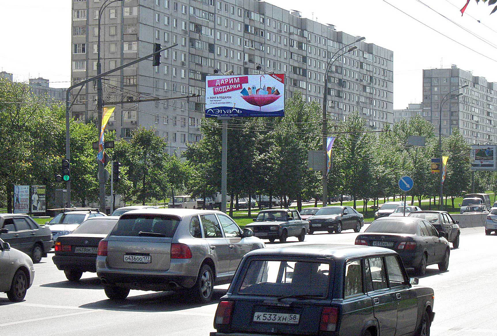 - Описание рекламной конструкции: Рядом находятся:светофор, "Спортмастер", обувной магазин "Маттино обувь", аптека "36'6", Р/Д 11, "Автозапчасти", "СБ РФ", кинотеатр "Марс", ночной клуб День независимости