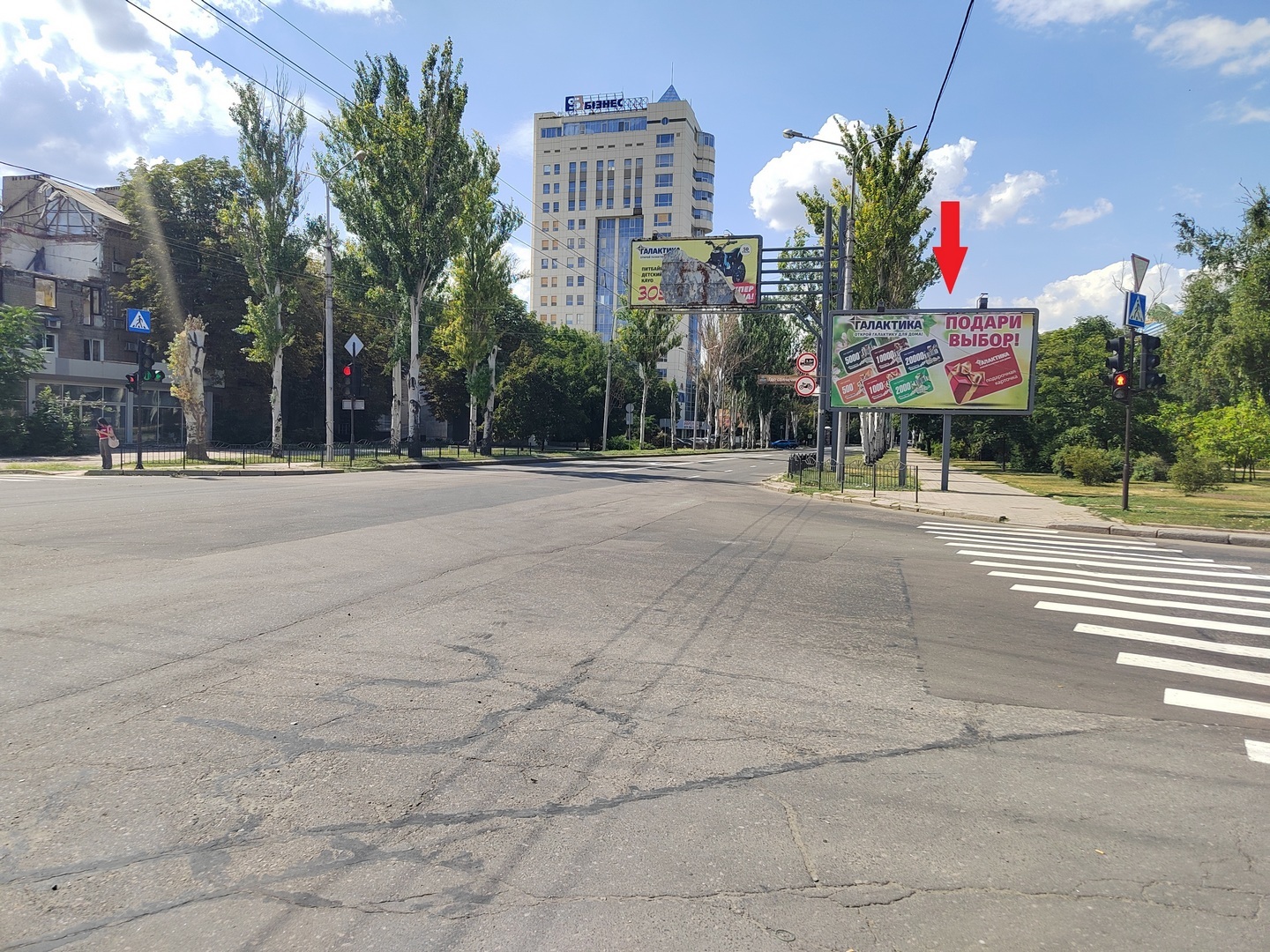 Фотография рекламного носителя, тип: Билборд 3x6, адрес: Артема ул. Х Челюскинцев ул., поз.1, Донецк, Донецкая область, Россия. Сторона А №1347850