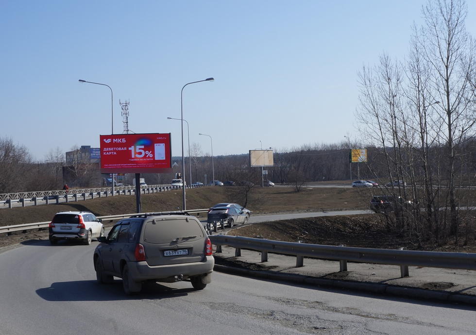 Крупная транспортная развязка, съезд с Кольцовского тракта в сторону объездной, рядом расположен ТЦ Леруа Мерлен. Из центра. Ролик 5 сек., блок 60 сек., время работы экрана: 00:00-00:00, кол-во часов работы: 24, кол-во выходов в сутки: 1440