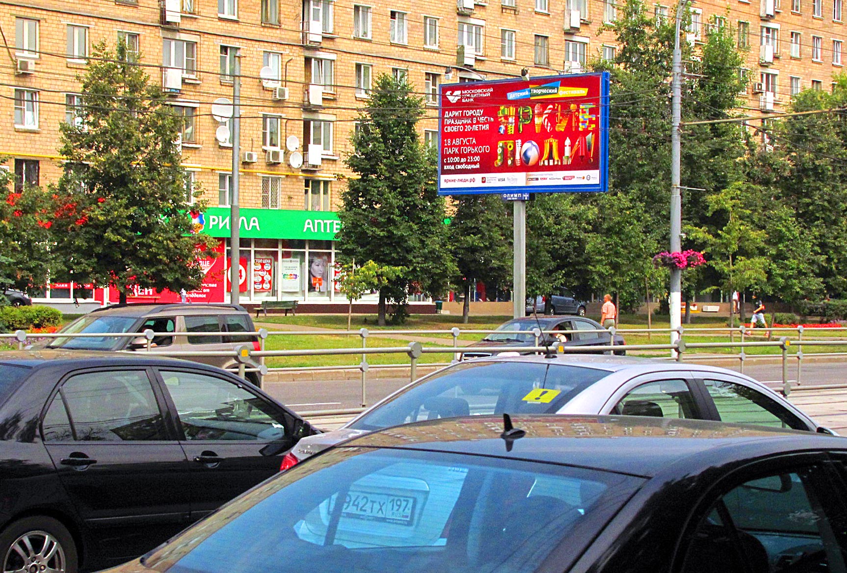 - Описание рекламной конструкции: Рядом находятся магазины продуктов "Абк-Универсам", "Продукты", Мир детских товаров, "Спортград", "Панинтер", обувные магазины "Сити-Обувь", "Терволина", "Ж", аптека "Ригла", автомагазин "Евразимпекс", автосалон "АвтоЦентр Восток - Fiat", "IL Патио", "Планета суши", "1-2-3 Кафе", "Кофейня Мока Лока", "СБ РФ", "ПриватБанк"