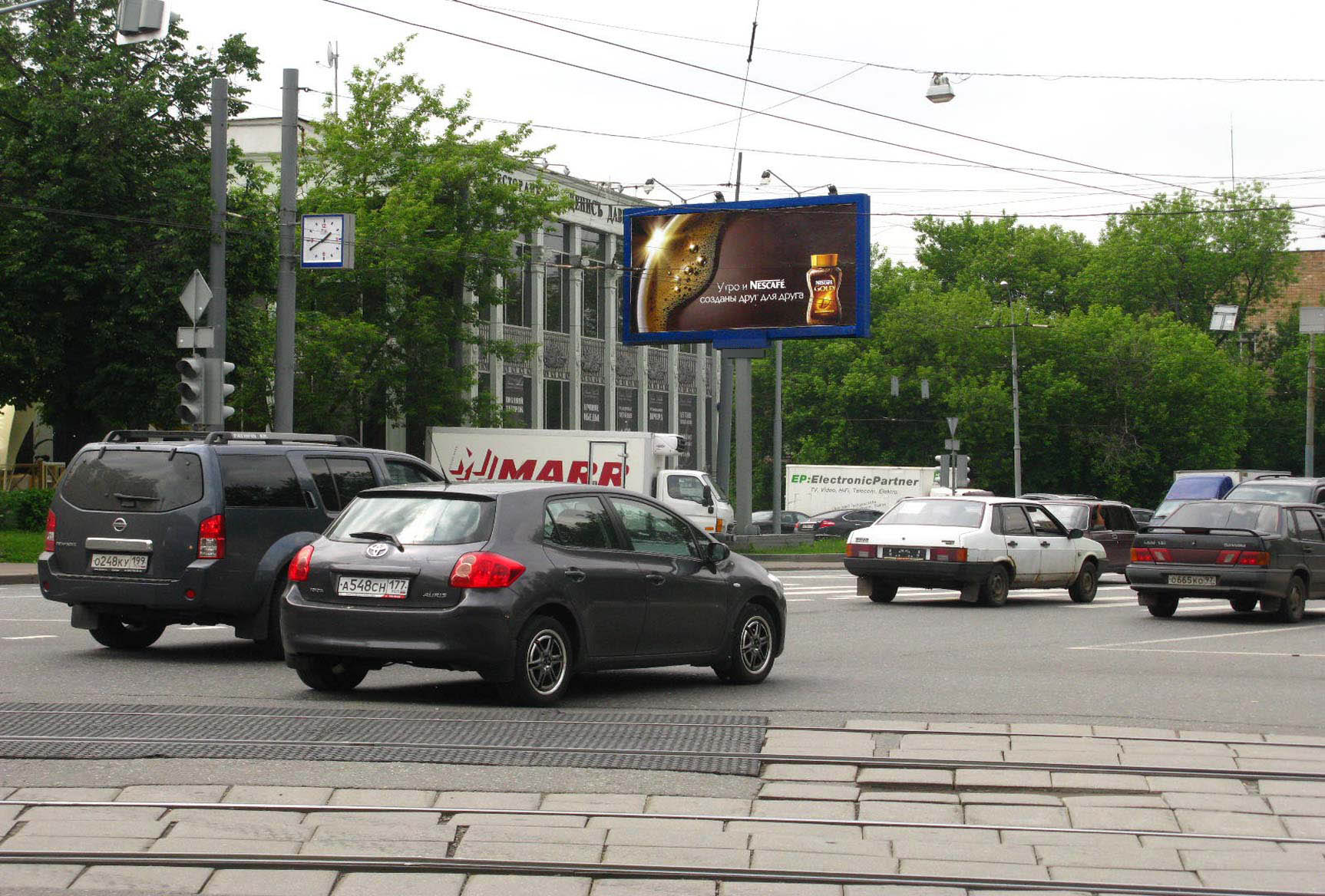 - Описание рекламной конструкции: Рядом находятся светофор, винный супермаркет "Ароматный Мир", "Старик Хоттабыч", "компания "Вязаный Мех"", автосервис, Техцентр "Семеновский"", "Автолюкс 88", "АвтоСервис "Питт Стоп"", "Техцентр BMW "NWA-Service"", "Техцентр "Семеновский"", "Автолюкс 88", "СБ РФ", "ОТП БАНК", кинотеатр "Родина"
