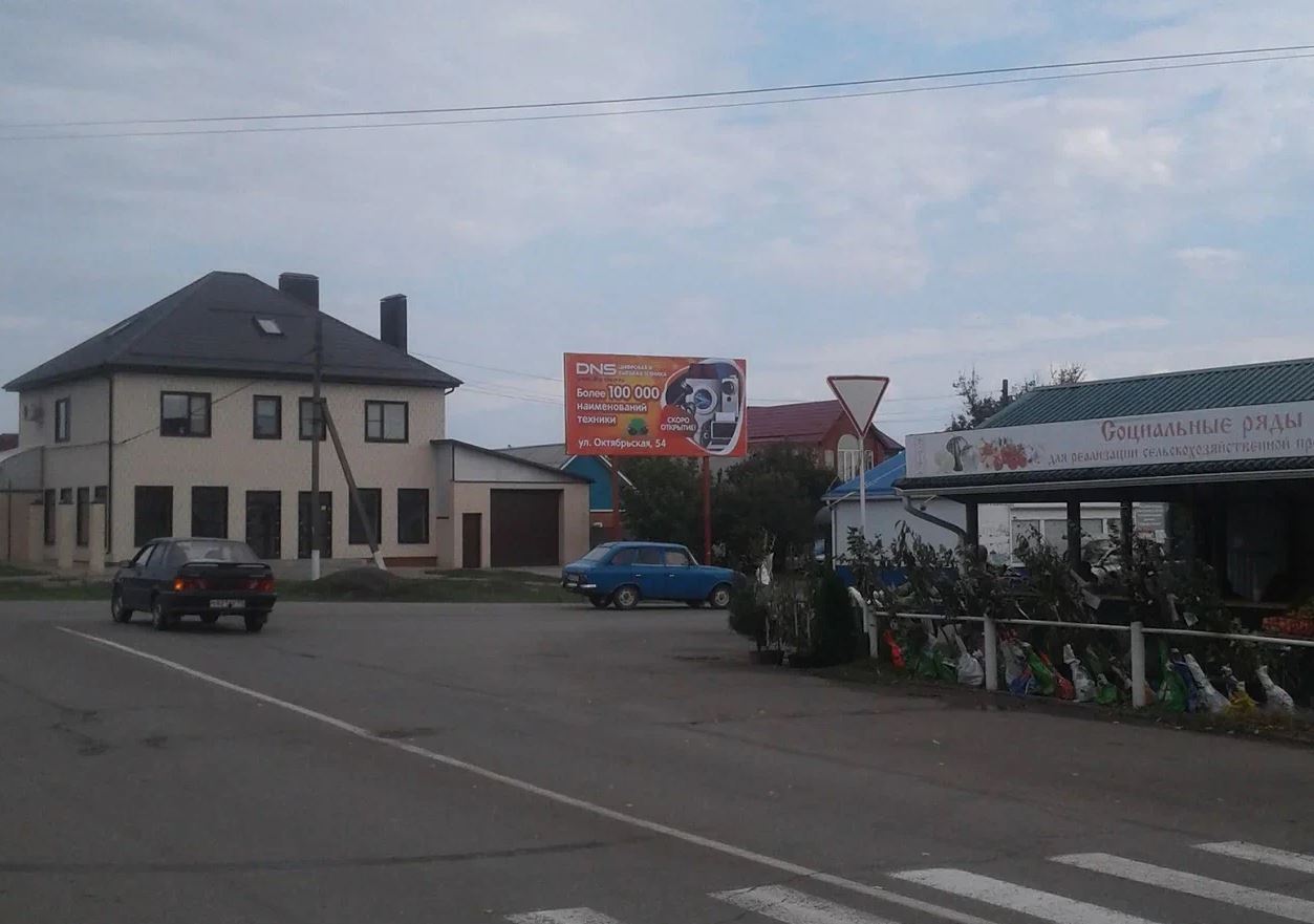 Фотография рекламного носителя, тип: Билборд 3x6, адрес: Брюховецкая ст., Красная ул. Х Димитрова ул., Краснодарский край, Россия. Сторона А №714793