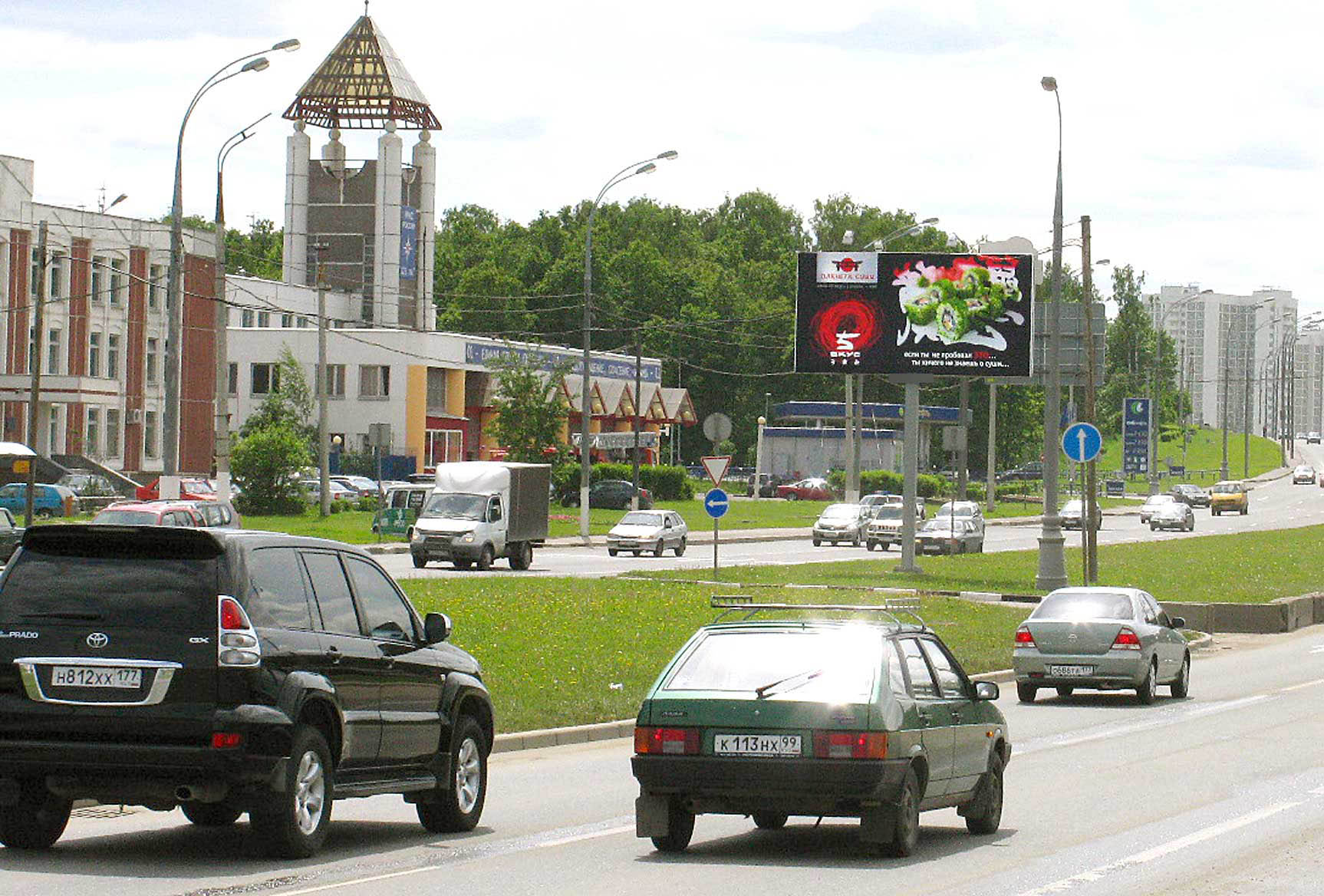 - Описание рекламной конструкции: Рядом находятся ТЦ "Апельсин", Техцентр "Авто100п", автосалон "Авто Стрим - продажа новых и подержанных авто", "Мастер-Банк", МРЭО