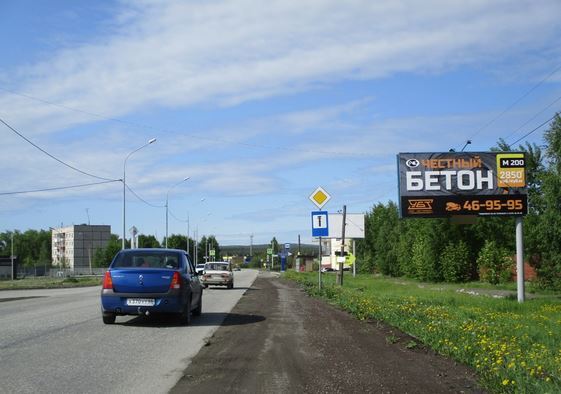 - Комментарий к адресу: Щит расположен на обочине дороги. Напротив находится газовая автозаправка, ночной клуб, с другой стороны расположен магазин "Строитель". Направление движения транспорта в г. Екатеринбург.