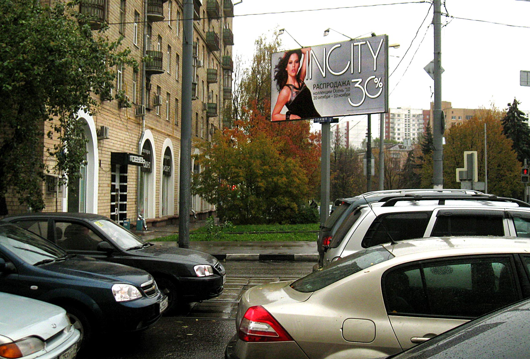 - Описание рекламной конструкции: Рядом находятся светофор, "Академкнига", "Арткати - Садовая мебель", "Ансистем - Дистрибьютер Kodak Professional", обувной магазин "Карло Пазолини", аптеки "Аптекарь", "О3", автомагазин "Алмера", Дарвиновский музей