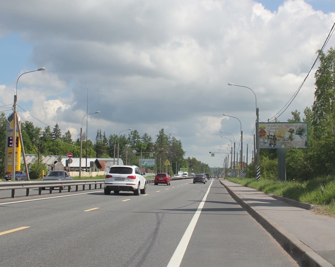 - Описание рекламной конструкции: Среднесуточная интенсивность движения: 32 852 автомобилей/сутки интенсивное движение по направлению г.Санкт-Петербург - г.Всеволожск, регулируемый перекресток Инфраструктура: АЗС "Роснефть" - 120м, СТО - 120 м Дополнительно: -Четырехполосная дорога -Поворот к жд.ст."Бернгардовка"