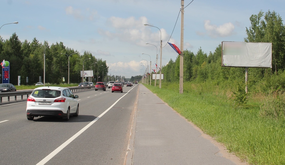 - Описание рекламной конструкции: Среднесуточная интенсивность движения: 32 852 автомобилей/сутки интенсивное движение по направлению г.Санкт-Петербург - г.Всеволожск Инфраструктура: Гипермаркет "Лента" - 120м; ЖК "Северный Вальс" - 200м; АЗС "Neste" - 50м; Отель - 300м; СТО "Автомакс" - 400м; АЗС "Роснефть" - 600м; Гипермаркет "Лента" - 900м Дополнительно: - Четырехполосная дорога