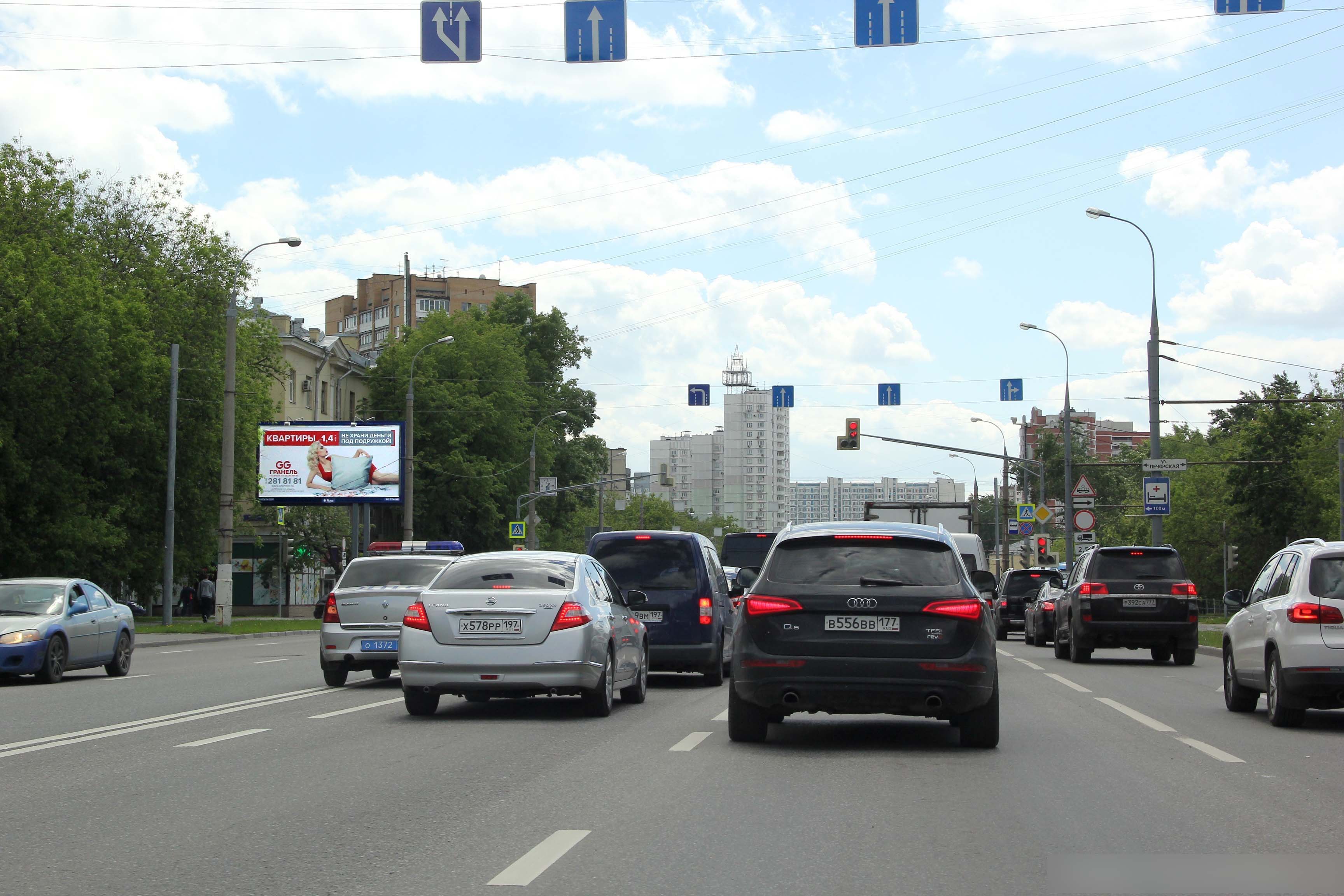 Направление: В центр; Расстояние видимости: В центр: 75-100; До светофора: более 150м.