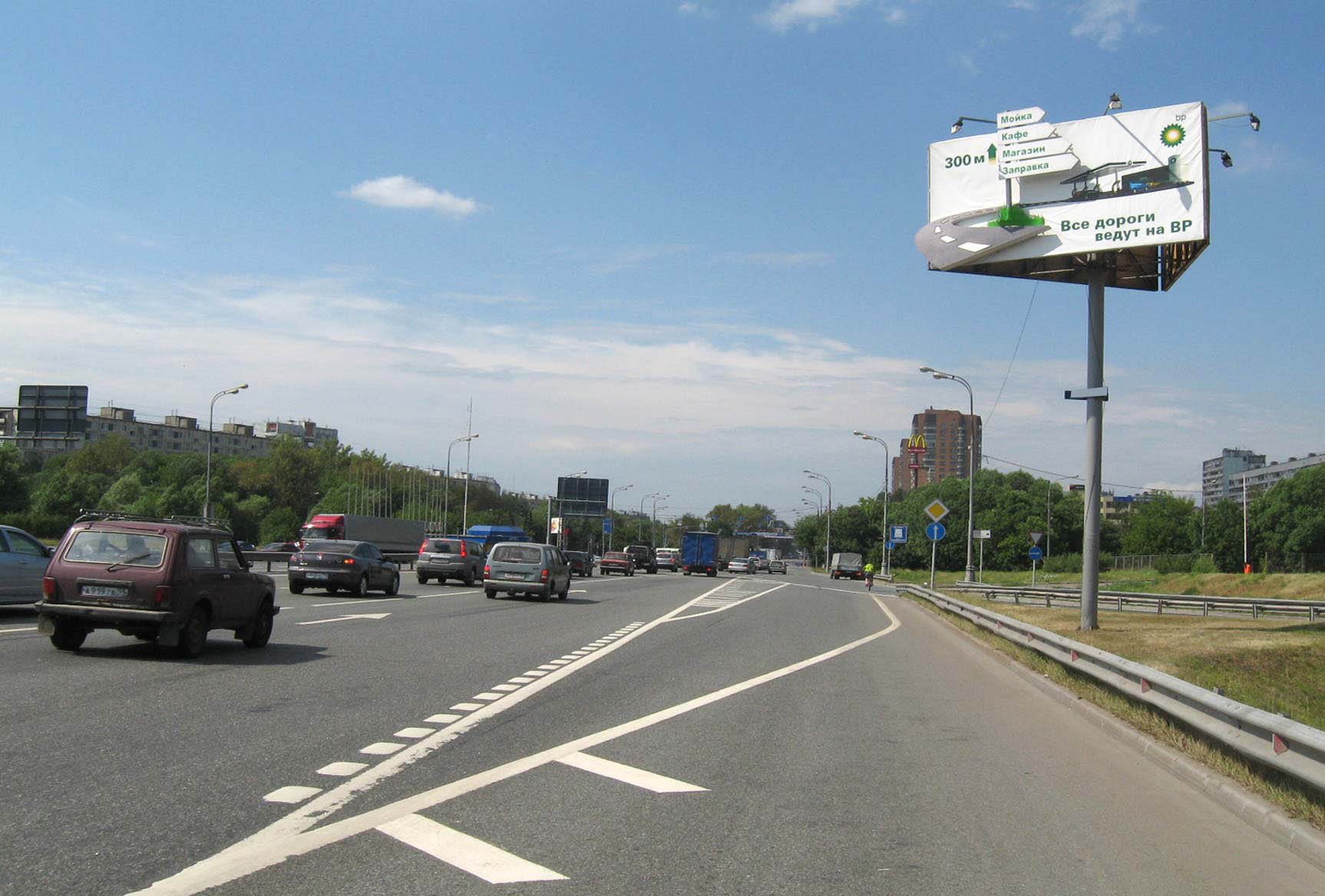 - Описание рекламной конструкции: Рядом находятся:АЗС, развязка с МКАД, ресторан "Макдоналдс", автосалон "Автокей"