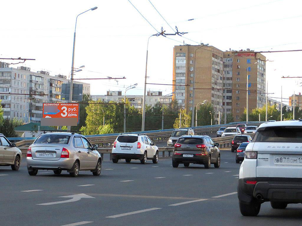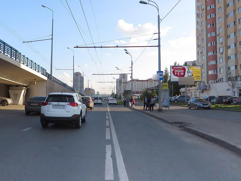 - Описание рекламной конструкции: Рекламная конструкция расположена на оживленной транспортной магистрали, соединяющей Ново-Савиновский район с центром города и Авиастроительным районом. Характеризуется интенсивным транспортным потоком. В непосредственной близости находятся крупный жилой массив с развитой инфраструктурой.