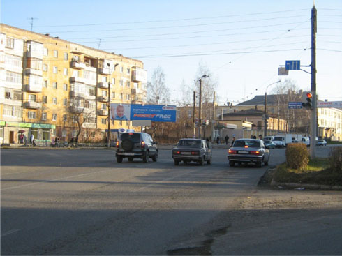 - Описание рекламной конструкции: Это крупная трассовая развязка. Здесь пересекаются транспортные потоки практически со всех районов города и транзитный транспорт идущий с Серовского тракта - северного направления Свердловской области. Рядом находится несколько крупных магазинов, аптека, остановка всех видов городского транспорта. Рекламное поле обращено на ул. Фрунзе на транспортную развязку - въезд в город с северного направления.