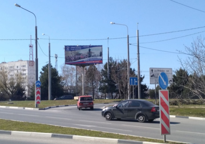 - Описание рекламной конструкции: Щит расположен на Свято-Никольской площади, на одной из центральных авторазвязок г. Севастополя. Три остановки общественного транспорта, светофоры с трех сторон от конструкции. Соседство с офисными и торговыми центрами, мабельным салоном “Танго”, супермаркетом “Новус”, круглосуточным магазином “Браво”, ночным клубом “Азия”, рестораном “Китай город”.