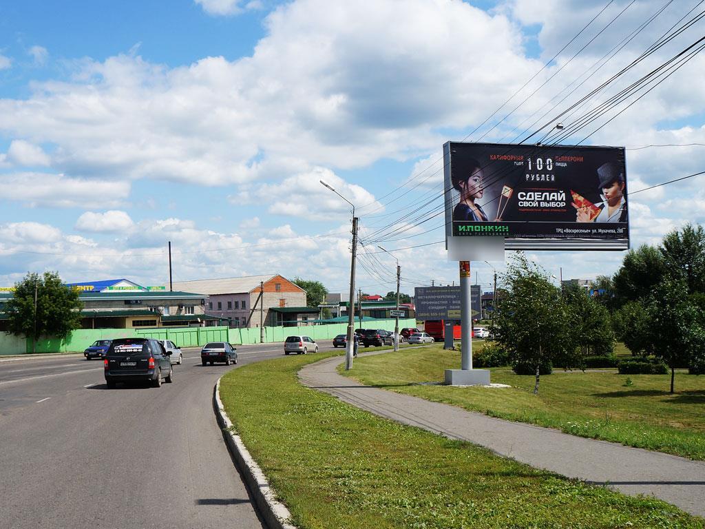 - Описание рекламной конструкции: Двусторонняя статичная освещенная конструкция. Установлена на улице Больничный взвоз -выезд из города по направлению в г. Барнаул и г. Новосибирск. Расположена слева, рядом с пересечением улиц Больничного взвоза и Революции.