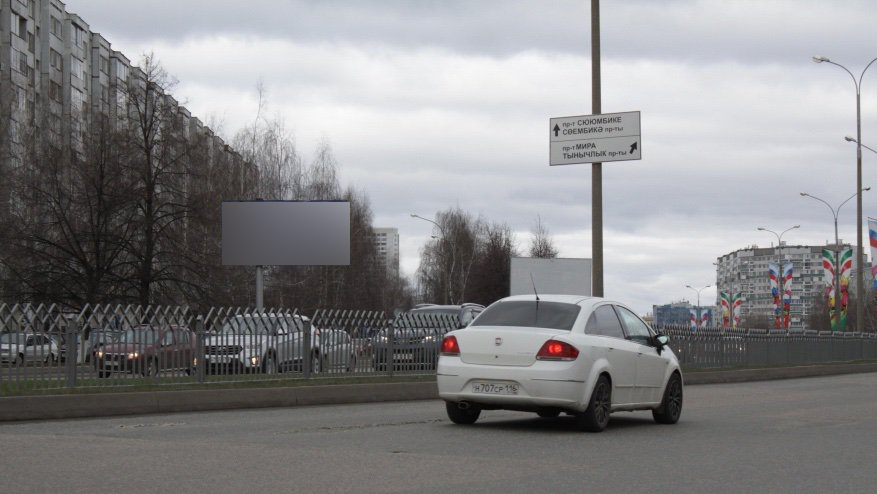 - Описание рекламной конструкции: Щит расположен на проспекте Хасана Туфана, напротив 6/01. Хорошо просматривается с дальнего расстояния, объектов, препятствующих обзору, нет. Рядом расположены: магазин одежды, квест, Татарский драматический театр. Напротив – крупный Бизнес-центр 2.18. Сторона А по направлению движения к пересечению с Московским проспектом.