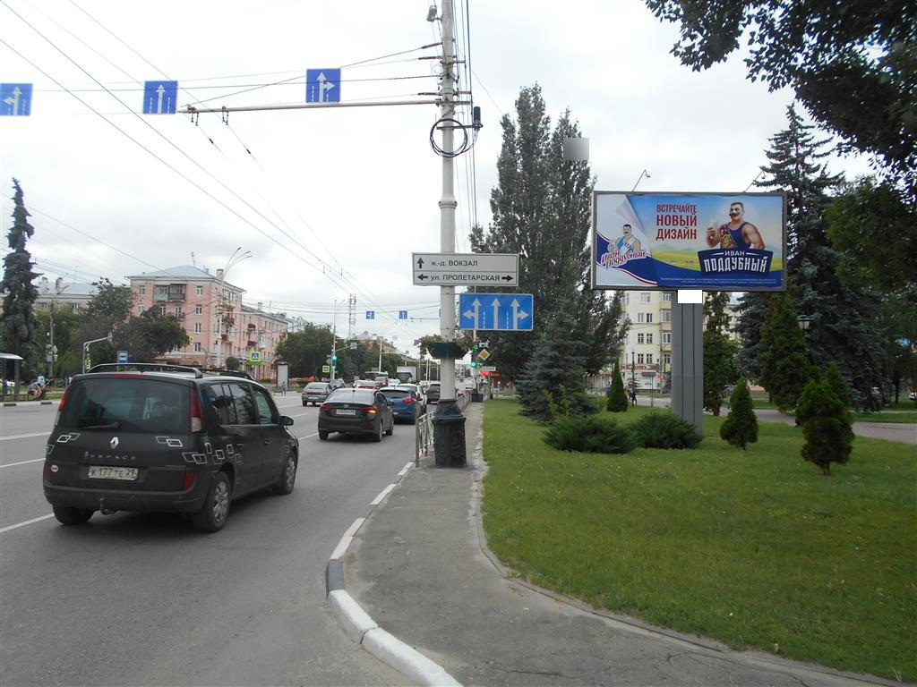 - Описание рекламной конструкции: Щит расположен на пересечении центральных улиц города - Интернациональная и Пролетарская недалеко от светофора. Рядом расположены магазины, ТЦ, банк.