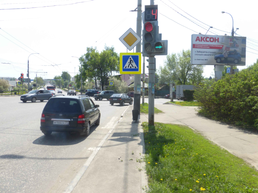 - Описание рекламной конструкции: Рядом находятся: светофор, пешеходный переход, магазин автотоваров «Автопоиск68», предприятие по производству продуктов питания и безалкогольных напитков "Золотая корона", автосалон "Мадонна" (продажа автомобилей ВАЗ и Samand)