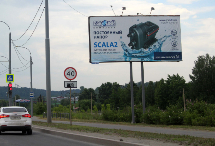 - Описание рекламной конструкции: Стойка расположена на оживленной промышленной улице. Пересечение с ул. Новоачинская. Рядом расположена автомойка, сеть автосервисов. Также рядом находится большой строительный магазин «Строительный двор». Оживленный поток грузового и легкового транспорта.