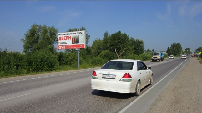 - Описание рекламной конструкции: щит расположен через 200 м после автобусной остановки "Насосная" (за 1000 м до поста ДПС)