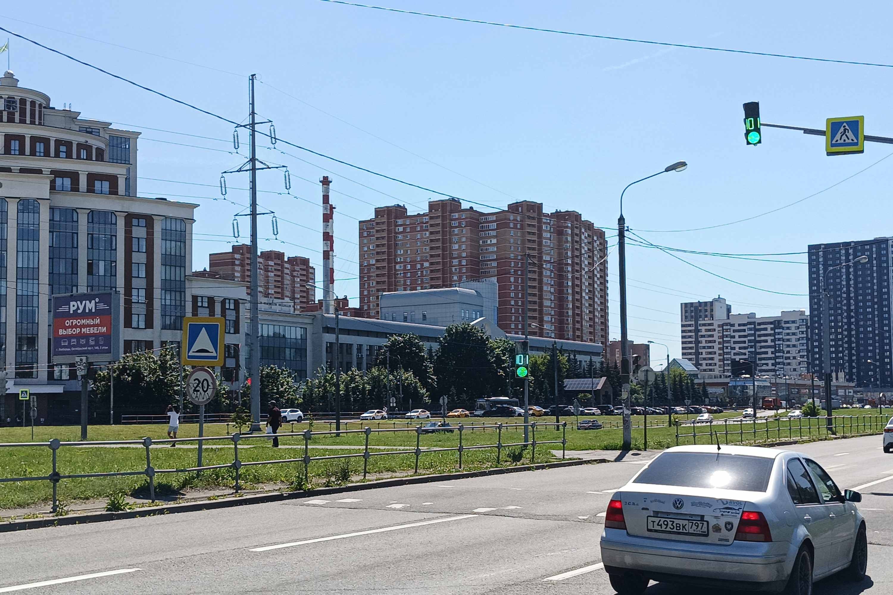 - Комментарий к адресу: на светофоре, на разделительном газоне
