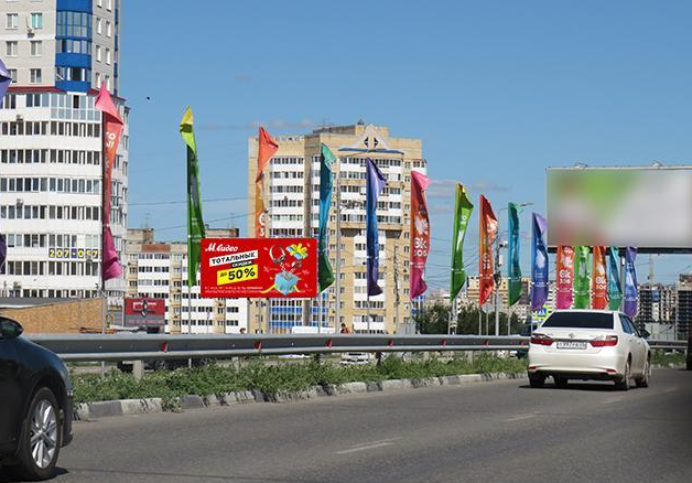 - Описание рекламной конструкции: Очень выгодное расположение конструкции при съезде с метромоста, интенсивное движение транспорта, постоянно авто пробки, жилой комплекс, светофор. Щит расположен по направлению к торговому комплексу «Заречный», «Фестиваль» и Континент». Основная выездная дорогая ведущая к семейному развлекательному комплексу «МЕГА», супермаркет «АШАН», гипермаркет отделочных материалов «Леруа Мерлен»