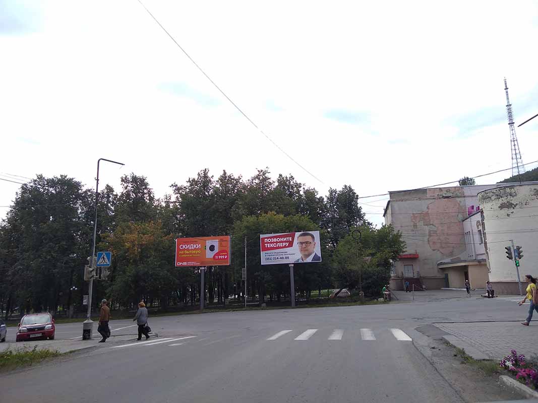 Фотография рекламного носителя, тип: Билборд 3x6, адрес: Ковшова ул. Х Ленина ул., д.1, Златоуст, Челябинская область, Россия. Сторона A №200689