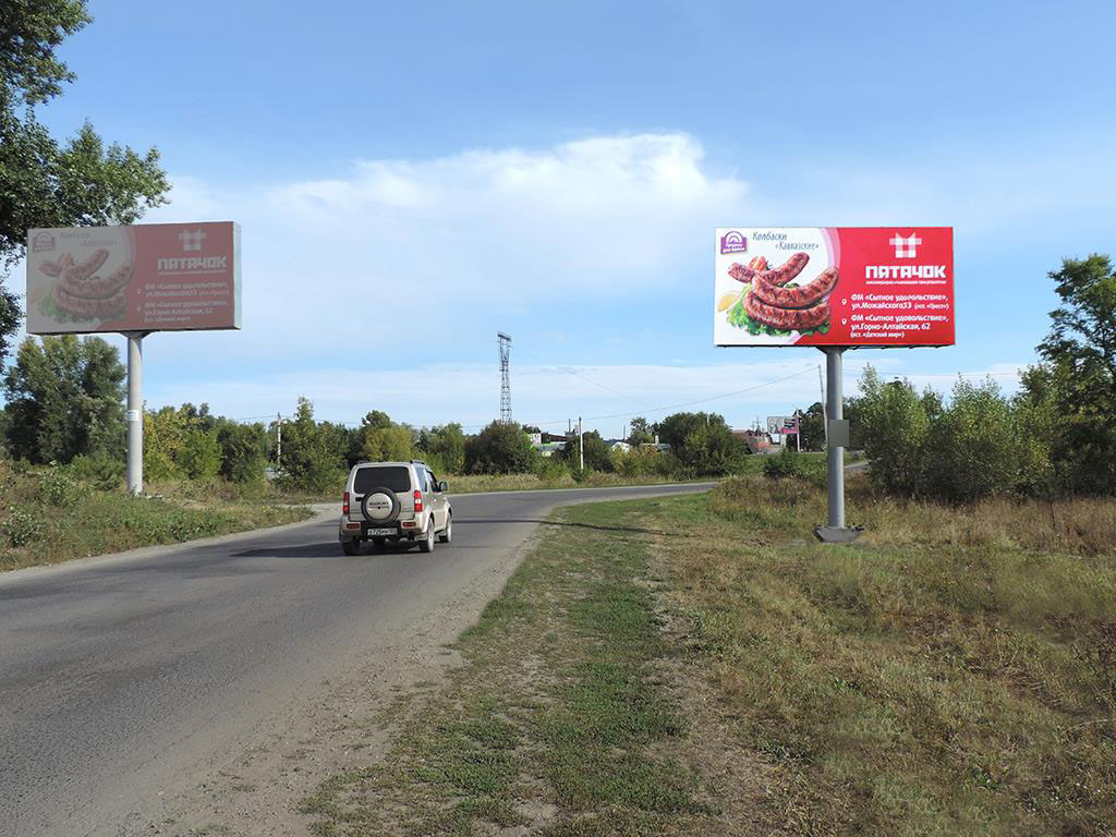 - Описание рекламной конструкции: Рекламная конструкция расположена на одной из ведущих автомобильных дорог г. Бийска, въезд в центр города со стороны курорта Белокуриха.