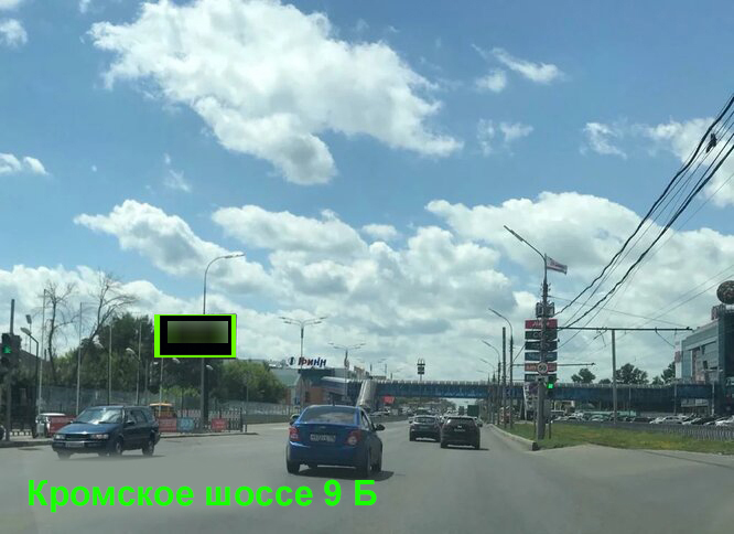 - Описание рекламной конструкции: Конструкция расположена прямо напротив ТМК "Гринн", который посещают свыше 80% жителей города Орла. Щит виден с любой остановки общественного транспорта на ТМК "Гринн" (Маршрутки, трамваи, автобусы).