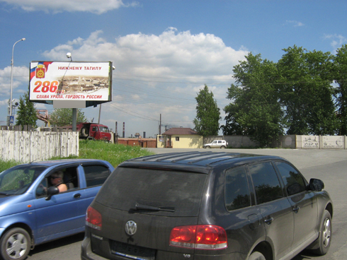 - Описание рекламной конструкции: Это транспортная развязка между Дзержинским районом, центром города и другими районами Н-Тагила. Одна из развилок дороги ведет на автовокзал. Здесь проходят активные транспортные потоки со всех районов Н-Тагила. Рекламное поле стороны А1 обращено на ул. Кушвинскую по направлению движения на автовокзал. Рекламное поле стороны А2 обращено на ул. Кушвинскую по направлению движения