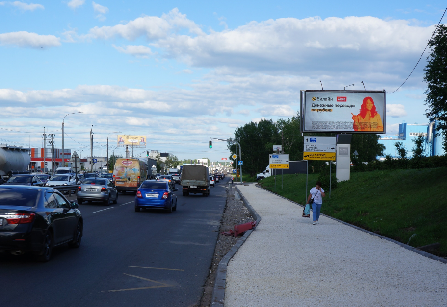 - Комментарий к адресу: напротив АЗС. Федеральное направление трассы М7. Огромный поток транспорта. Направление в ТРЦ Мега.