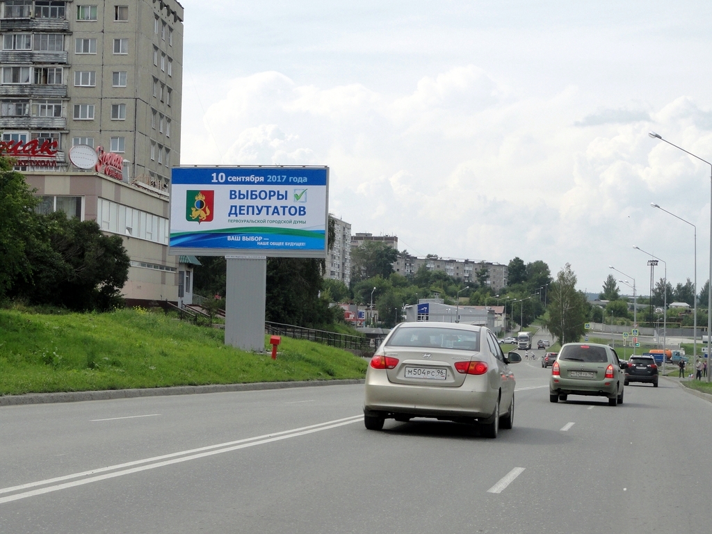 при движении к пр. Космонавтов и в сторону выезда в Билимбай, конструкция слева