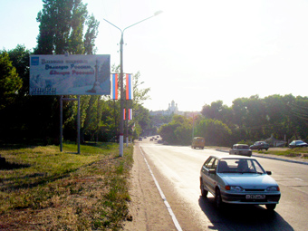 - Описание рекламной конструкции: Щит расположен в начале одной из главных улиц города по направлению движения из центра города