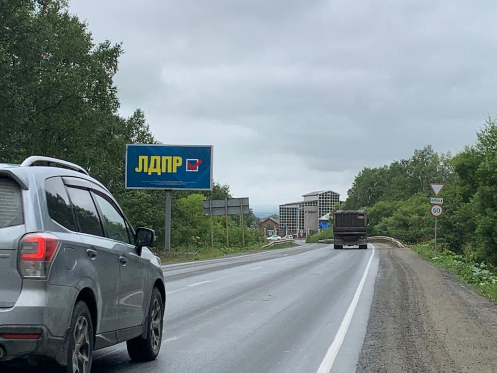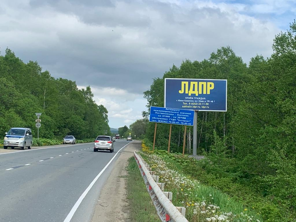 Нестандартный билборд, Лиственничное -Охотское а/д., 0 250м, Южно-Сахалинск