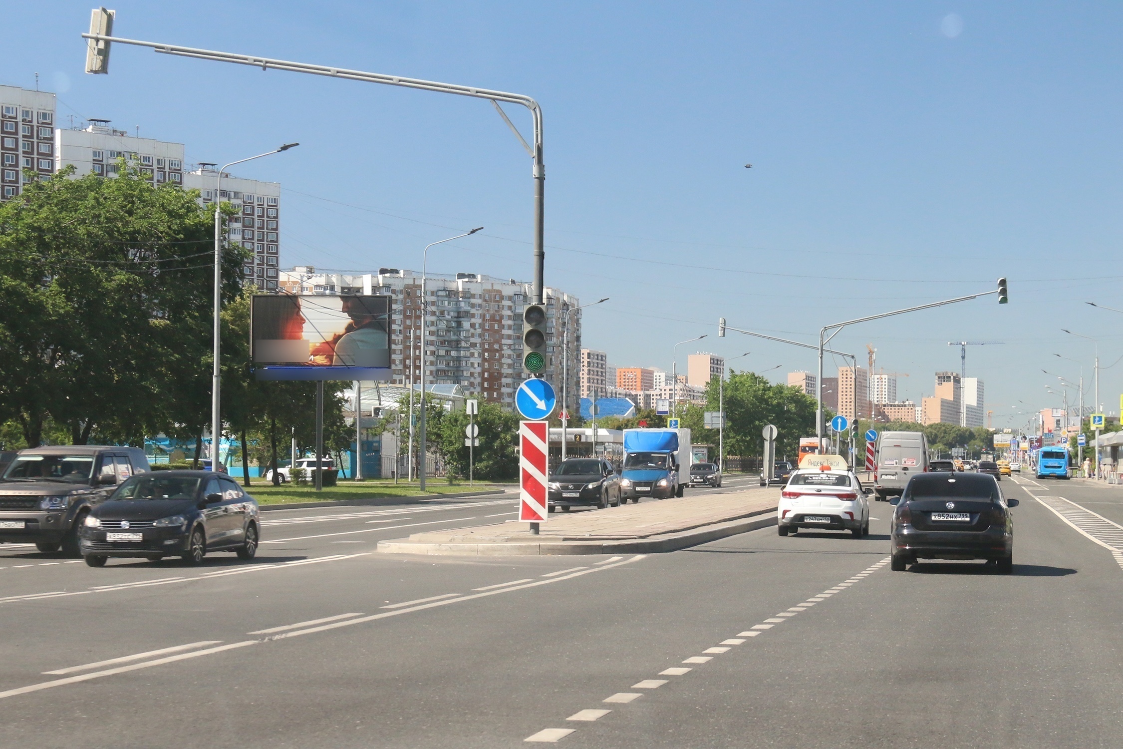- Описание рекламной конструкции: Рядом находятся станция метро "Марьино", торговый комплекс Марьино, Евросеть, светофор