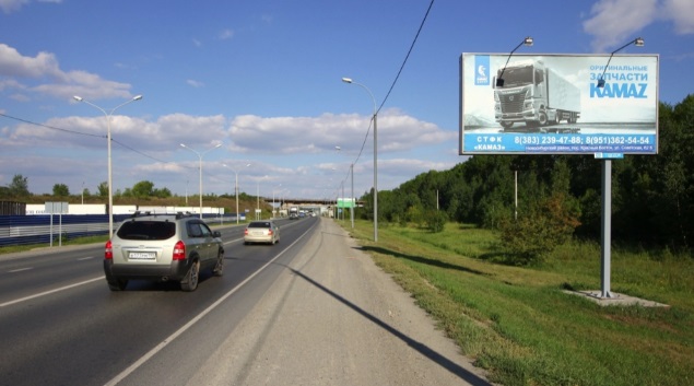 - Описание рекламной конструкции: щит расположен на въезде в Новосибирск, на трассе М-51 "Байкал", движение из Омска в Новосибирск, примерно в 1,45 км от г. Оби (от кольцевой развязки на аэропорт Толмачево), низкая скорость движения. Рядом находится большой автокомплекс со стоянкой под большегрузный автотранспорт (Омский тракт 1 к 4)