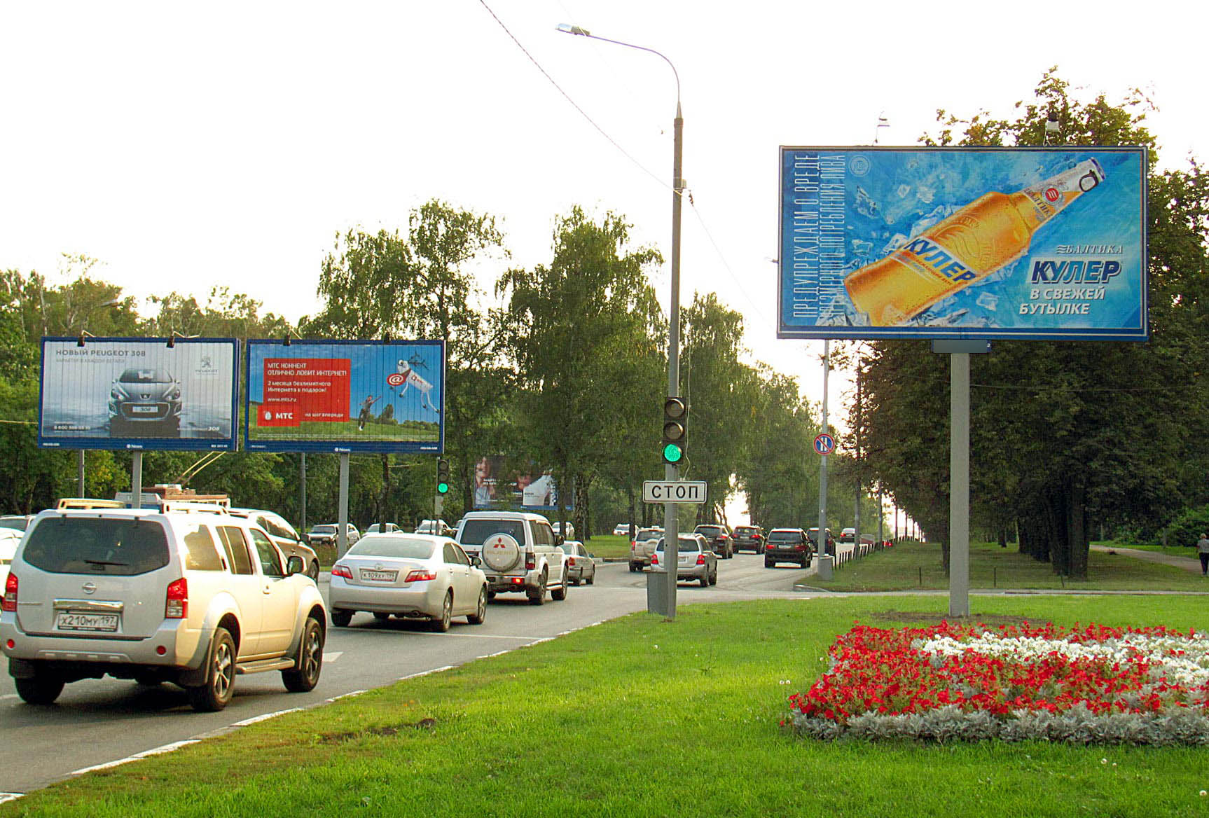 - Описание рекламной конструкции: Рядом находятся: перекресток, парк МГУ, поликлиника