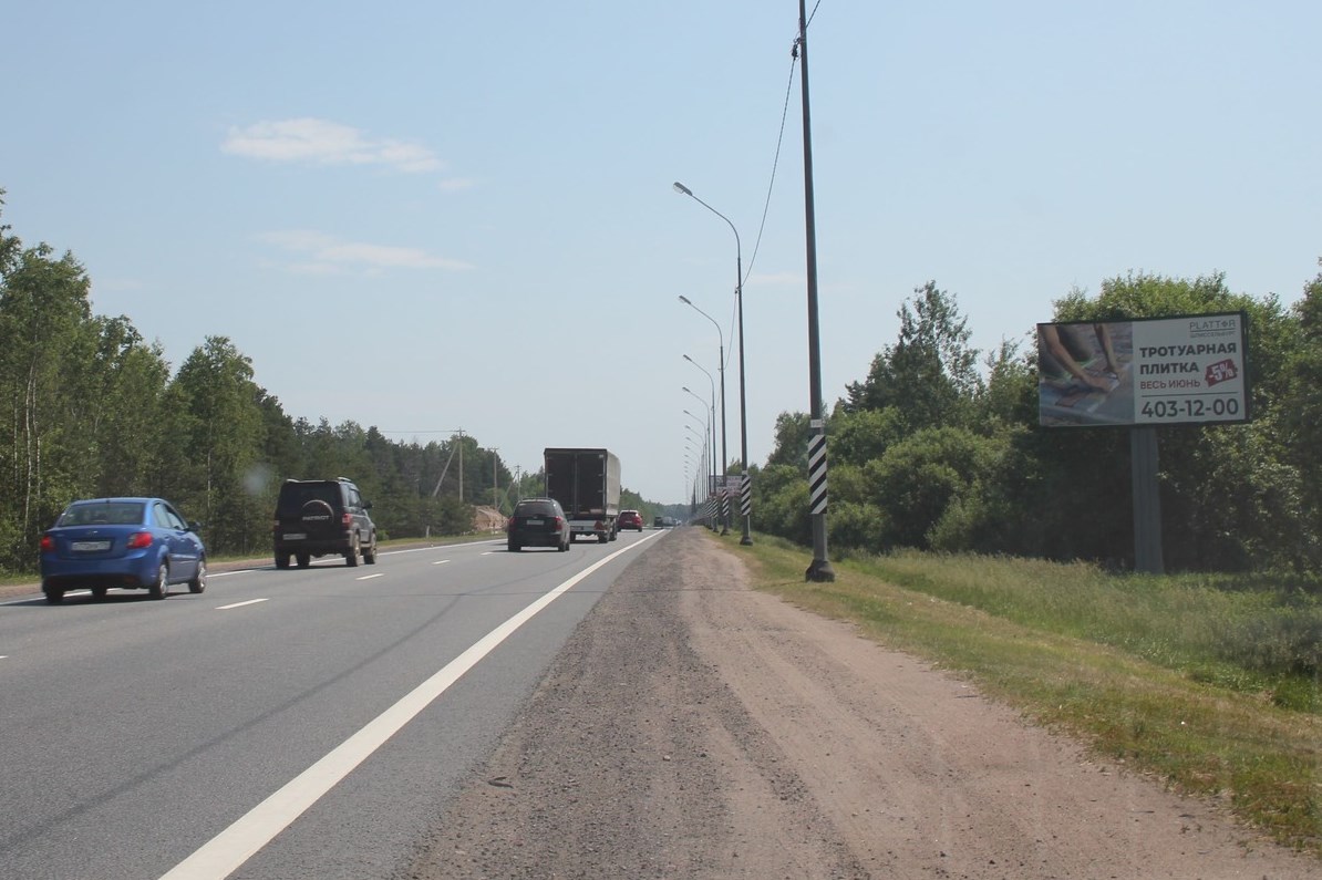 - Описание рекламной конструкции: Среднесуточная интенсивность движения: 30 110 автомобилей/сутки интенсивное движение по направлению Санкт-Петербург - Мурманск Инфраструктура: СНТ «ТЭМП»-3,6км Дополнительно: Дорога на г. Петрозаводск В непосредственной близости расположены коттеджные поселки премиум-класса