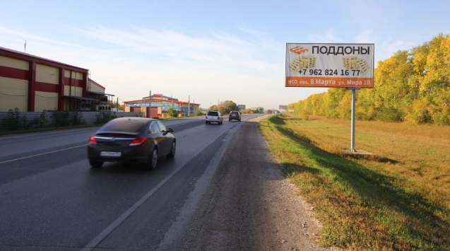 - Описание рекламной конструкции: рекламый щит расположен: примерно в 400 метрах от автобусной остановки п. 8 Марта; активное пригородное и транзитное движение