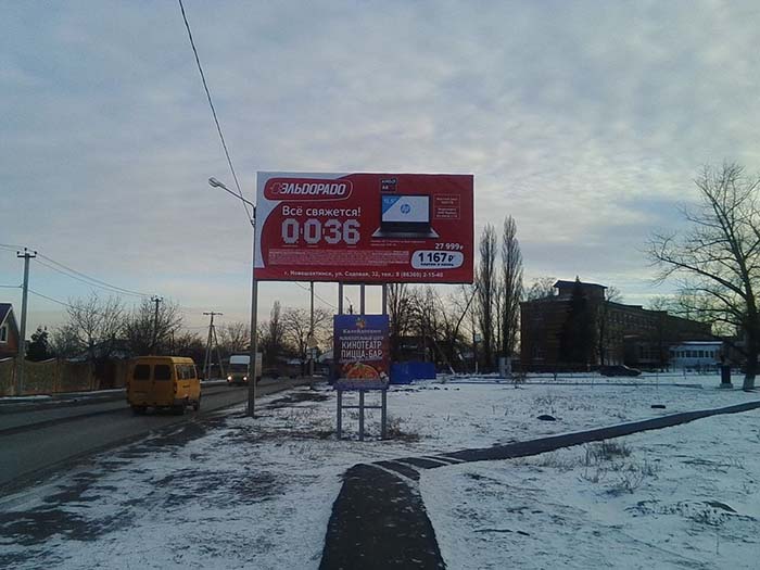 Фотография рекламного носителя, тип: Билборд 3x6, адрес: Ростовская ул., д.16 Х Мичурина ул., Новошахтинск, Ростовская область, Россия. Сторона А №719947