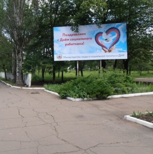 Фотография рекламного носителя, тип: Билборд 3x6, адрес: Шахтёрск г., Крупской ул., д.1а, Шахтёрск, Донецкая область, Россия. Сторона А №1327218
