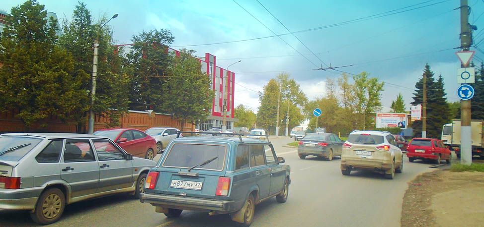 - Описание рекламной конструкции: 3х5,6м. Установка расположена на автотранспортом кольце, выезды с которого ведут на Шереметевский проспект города (один из двух главных проспектов), на продовольственный рынок на Сарментова, к Крупному текстильному центру «Текстиль Проффи», к 4 городской клинической больнице. Большой транспортный поток, вблизи нескольких остановок пассажирского транспорта.