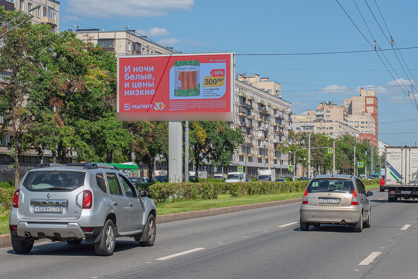 - Описание рекламной конструкции: Интенсивное движение к пр-т. Просвещения. Универсам "Северный", ресторан "БлинДональт", "Дом Посуды"