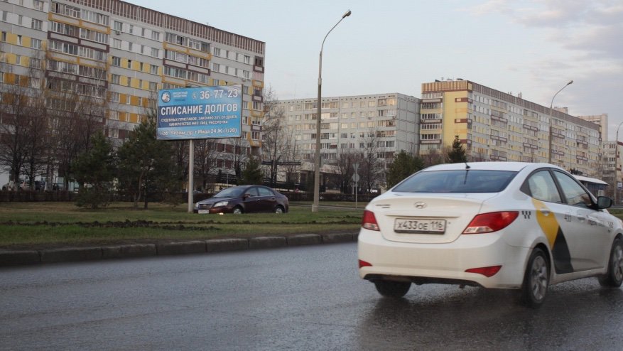 - Описание рекламной конструкции: Щит расположен на проспекте Хасана Туфана рядом с остановкой "Автоградбанк". Щит хорошо просматривается с дальнего расстояния. На пути обзора нет препятствий. Рядом находятся: Сбербанк, Автоградбанк, суши-бар "Гин-но Таки", булочная "Челны Хлеб" и магазин детской одежды "Детские товары". Сторона А по направлению движения к пересечению с проспектом Чулман, в сторону ТРЦ "Сити Молл".