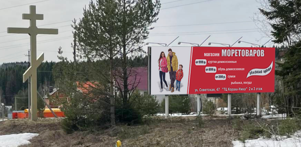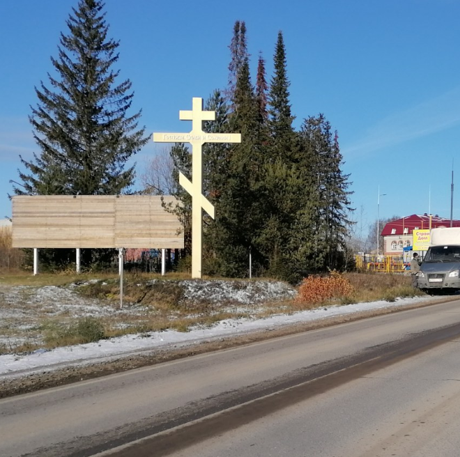 Нестандартный билборд, въ-д в р.п. Полазна, у поклонного креста №29, Пермь