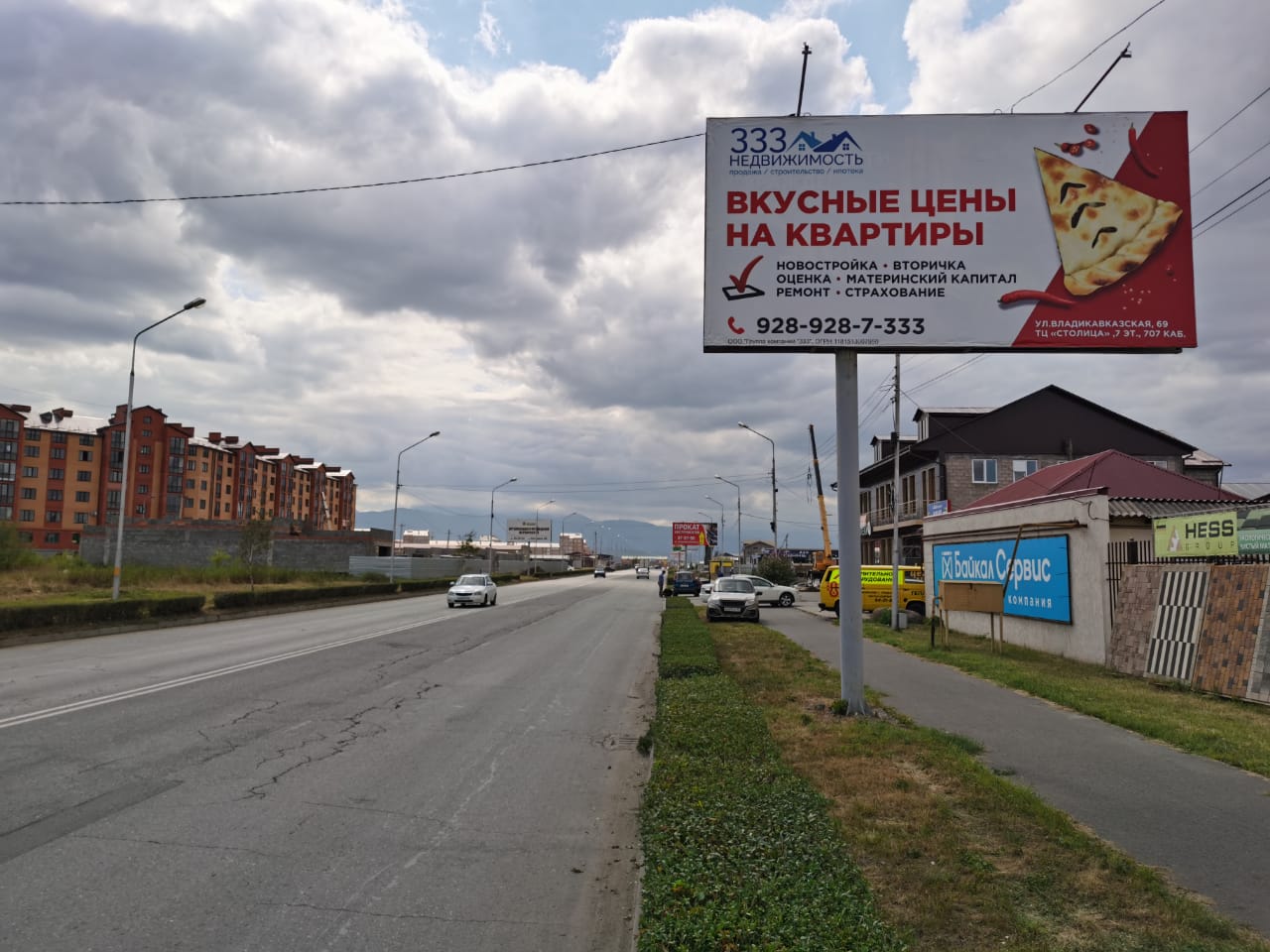 Фотография рекламного носителя, тип: Билборд 3x6, адрес: Владивостокская ул., поз.1, Владикавказ, Республика Северная Осетия – Алания, Россия. Сторона А №1384759