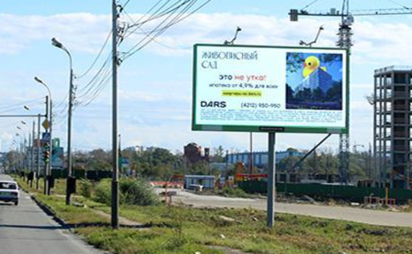 - Описание рекламной конструкции: Окружающие объекты: складские помещения ДВ Керамика, завод Балтика