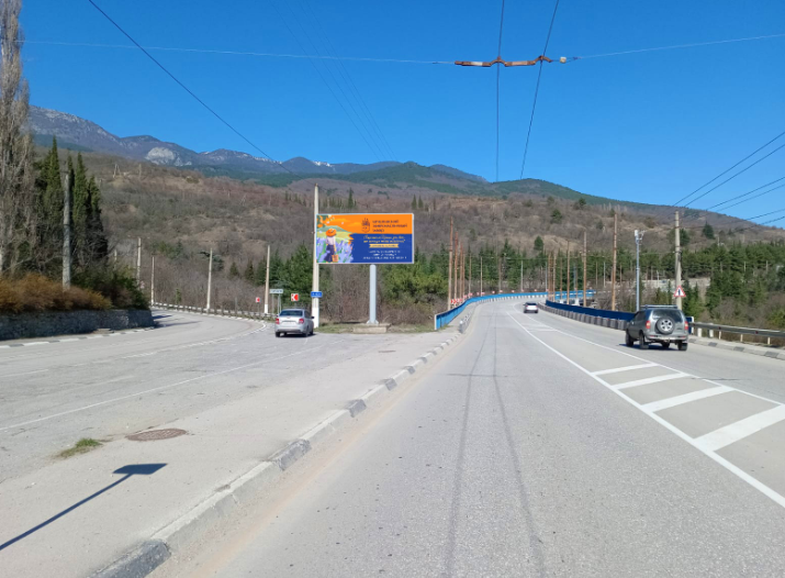 Фотография рекламного носителя, тип: Билборд 3x6, адрес: ЮБШ, Гурзуфский мост со стороны Ялты, Гурзуф, Республика Крым, Россия. Сторона В №1081185