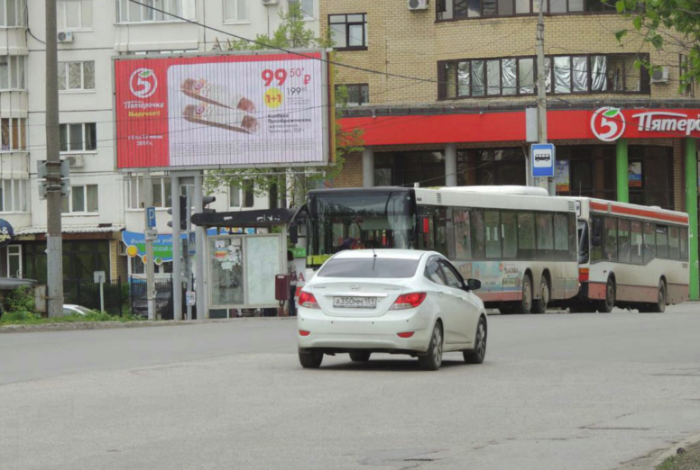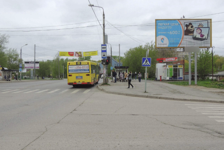 - Описание рекламной конструкции: Перекресток, остановочный комплекс, супермаркет сети "Пятерочка", сеть пиццерий ДокаПицца, Хирш (сеть агенств недвижимости), детский центр "Дельфинчик", отворот на центр обслуживания автомобилей и множество различных торговых точек