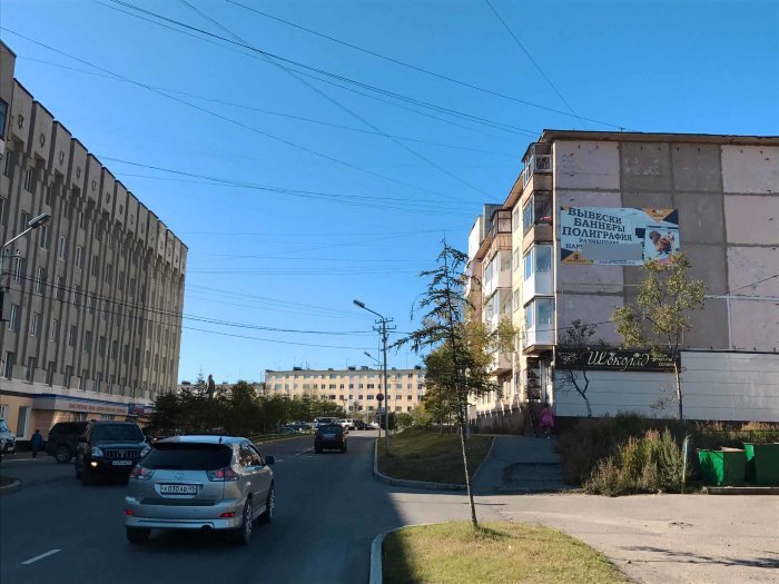 Фотография рекламного носителя, тип: Брандмауэр, адрес: Болдырева ул., д.3, Магадан, Магаданская область, Россия. Сторона A №1051687