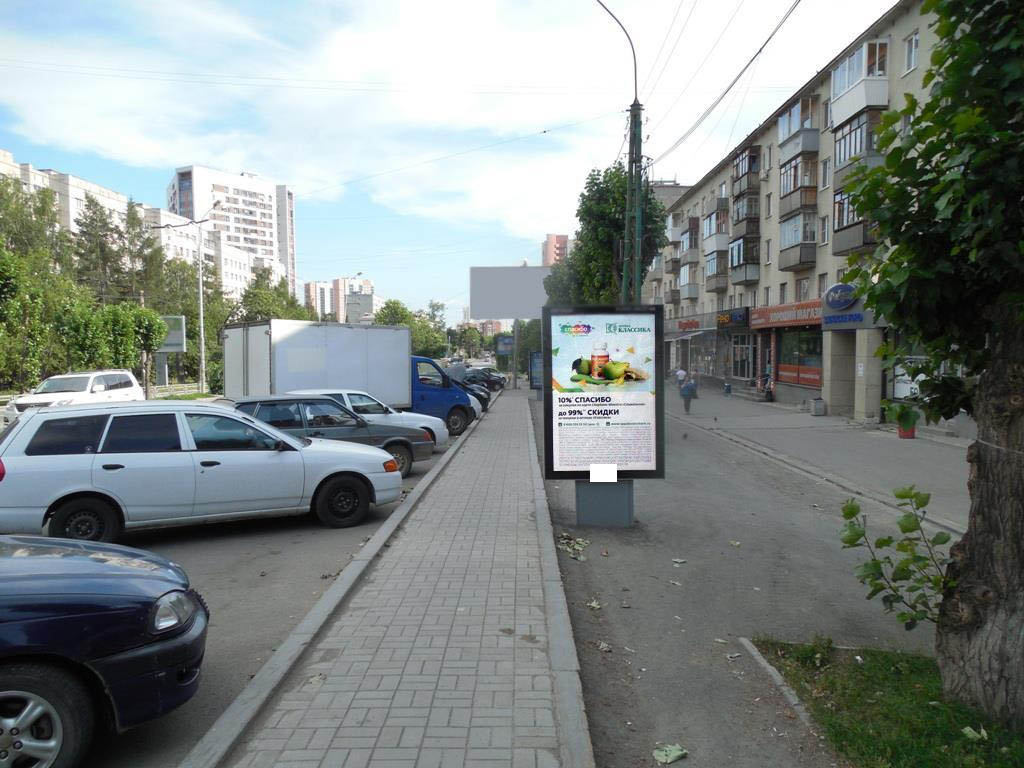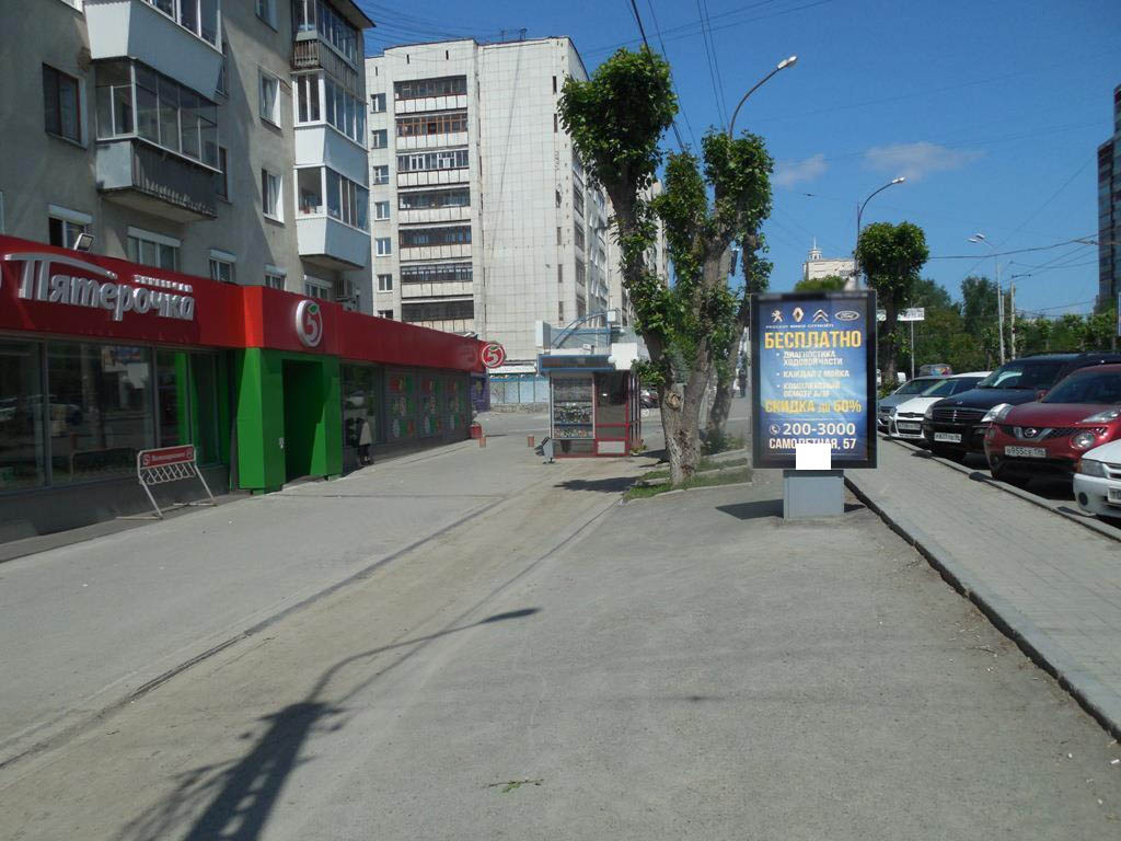 - Описание рекламной конструкции: РК расположена в центральной части города, на одной из длинных и крупнейших транспортных магистралей, которая проходит через три жилых микрорайона (Центральный, Южный, Ботанический) и три административных района (Октябрьский, Ленинский, Чкаловский). Рядом расположены: магазин сети продуктовых магазинов "Пятерочка", Отделение Уральского банка Сбербанк, сеть популярных магазинов постоянных распродаж "Галамарт", студия фитнеса и танца "Kangoo fitness", информационно-консультативный центр "Ир-Бис", являющийся официальным дилером крупнейших издательств учебно-методической литературы по всем областям знаний, сети аптек "Классика", "Валета", финансово-кредитное учреждение "МОСОБЛБАНК", "Траст Национальный банк" , сеть популярных магазинов мужской одежды "Пеплос". По улице проходит активный автомобильный поток, в том числе маршруты общественного транспорта (автобусы, троллейбусы, маршрутные такси).